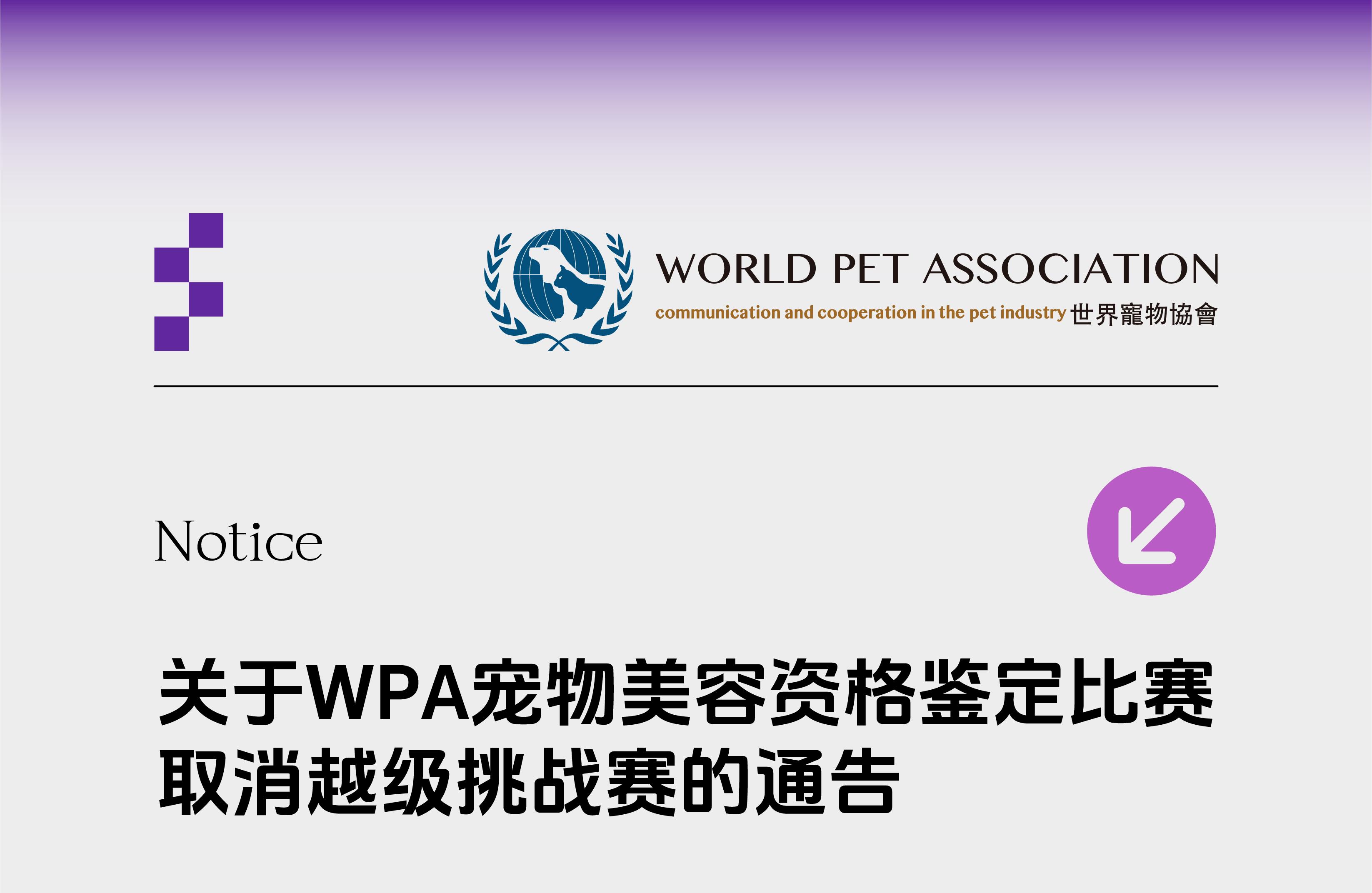关于WPA宠物美容资格鉴定比赛取消越级挑战赛的通告
